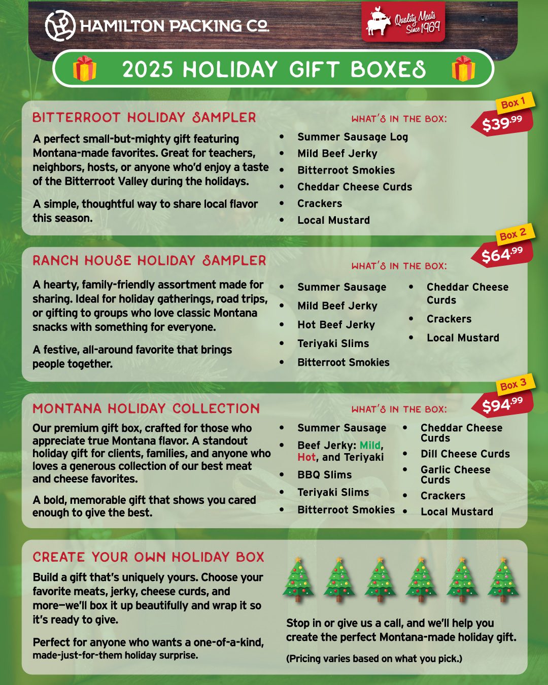 🎄 Stop in or give us a call — we’ll help you create a thoughtful, delicious gift packed with Montana pride.